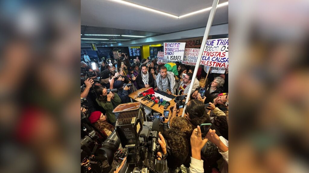 O ativista brasileiro Thiago Ávila desembarcou por volta das 6h40 da manhã desta sexta-feira (13) no aeroporto internacional de Guarulhos, em São Paulo, após ter sido detido por forças de segurança de Israel. Ele participava de uma missão humanitária internacional com destino à Faixa de Gaza, quando o barco em que estava com outros 12 ativistas — com Greta Thunberg entre eles — foi interceptado em águas internacionais.