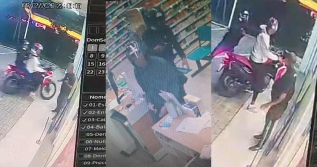 Ao chegarem no local, avistaram dois homens no interior da farmácia e outros dois criminosos, em motos, prestando apoio para fuga. Neste momento, uma troca de tiros teve início.